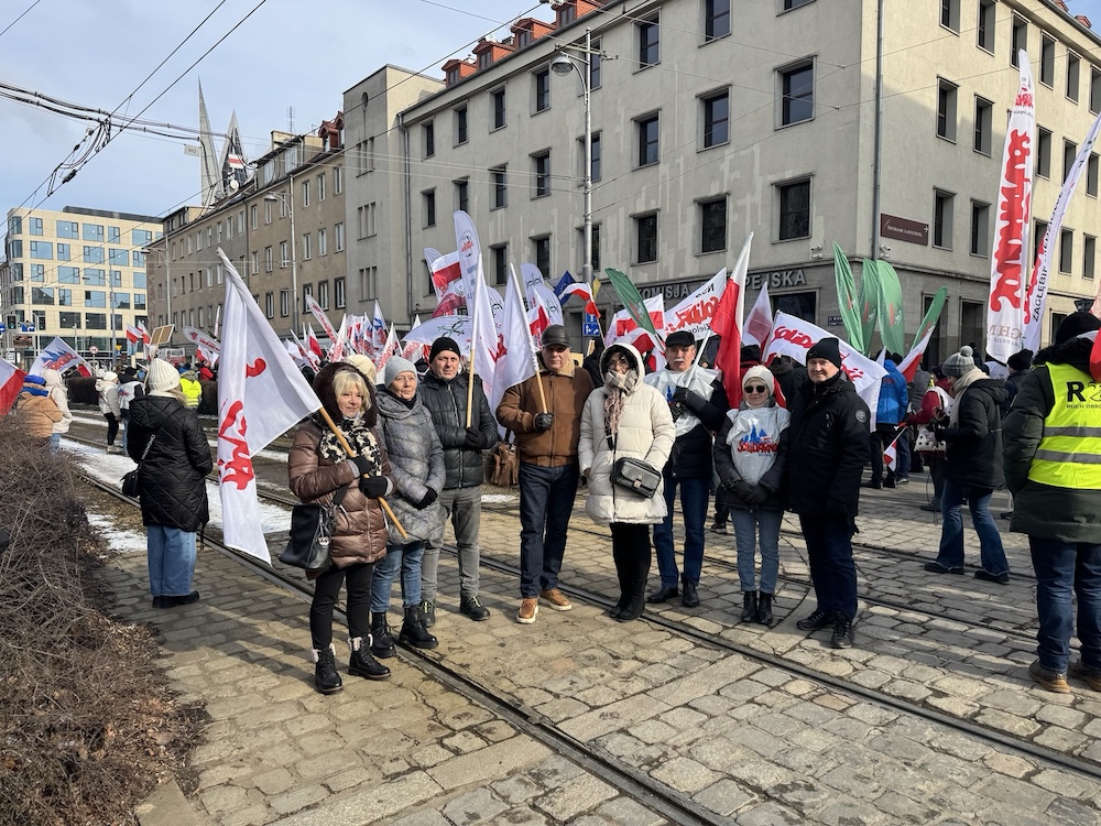 Zielony Ład zagraża polskiej gospodarce i uderzy we wszystkich – tak można podsumować wystąpienia liderów związkowych z NSZZ „Solidarność” zebranych w południe 20 lutego pod biurem Parlamentu i Komisji Europejskiej. W manifestacji zorganizowanej przez Region Dolny Śląsk wzięli również udział związkowcy z regionów:  Podbeskidzie, Zagłębie Miedziowego, Jeleniogórksiego i Zielonogórskiego oraz członkowie OOPT NSZZ "Solidarność" we Wrocławiu.