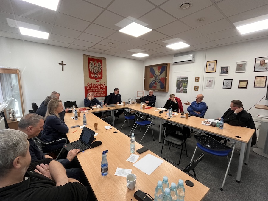 Przedstawiono relację ze spotkania z Bartłomiejem Mickiewiczem z-cą przewodniczącego Komisji Krajowej NSZZ „Solidarność”, której tematem była organizacja struktur branżowych związku.