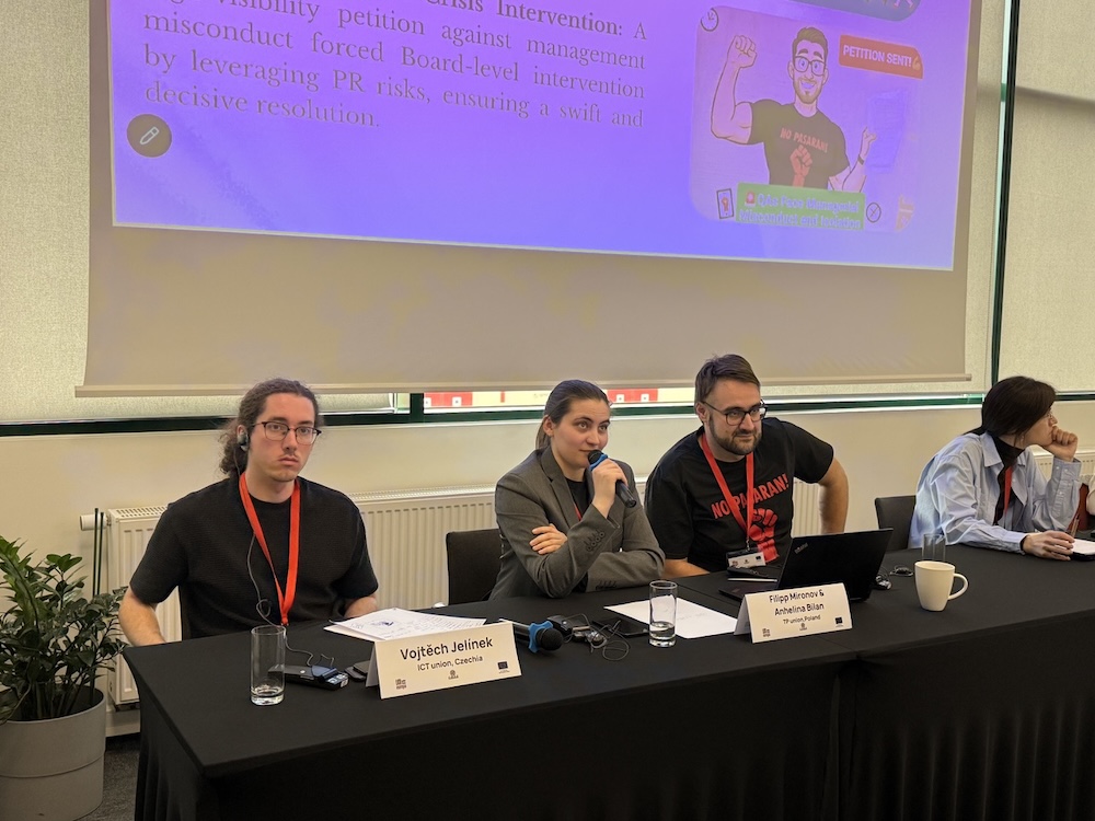 Program konferencji był intensywny i dobrze ułożony. Pierwszy dzień poświęcono m.in. wykorzystaniu narzędzi cyfrowych w działalności związkowej, wymianie doświadczeń oraz rozmowom o rozszerzaniu układów zbiorowych pracy w regionie. Duże zainteresowanie wzbudziła debata o wpływie sztucznej inteligencji na rynek pracy.